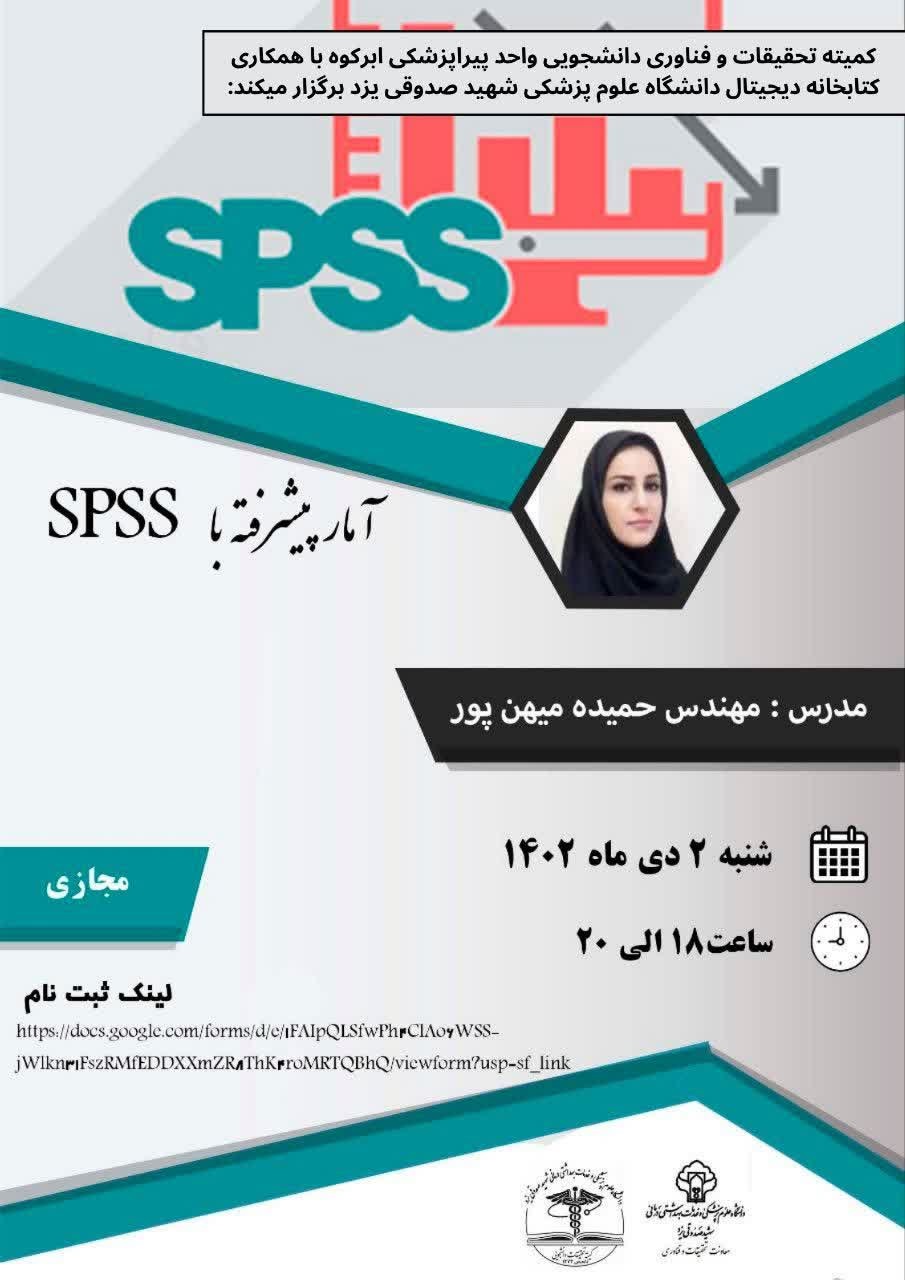 کمیته تحقیقات دانشجویی معاونت تحقیقات و فناوری با همکاری کتابخانه دیجیتال کارگاه آمار پیشرفته spss را برگزار میکند.