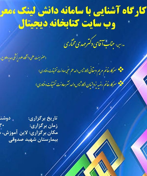 کارگاه آشنایی با سامانه دانش لینک و معرفی وب سایت کتابخانه دیجیتالمدیر کتابخانه دیجیتال18 آذر 1402کارگاه آشنایی با سامانه دانش لینک و معرفی وب سایت کتابخانه دیجیتال مدرسین:جناب ... اطلاعات بیشتر
