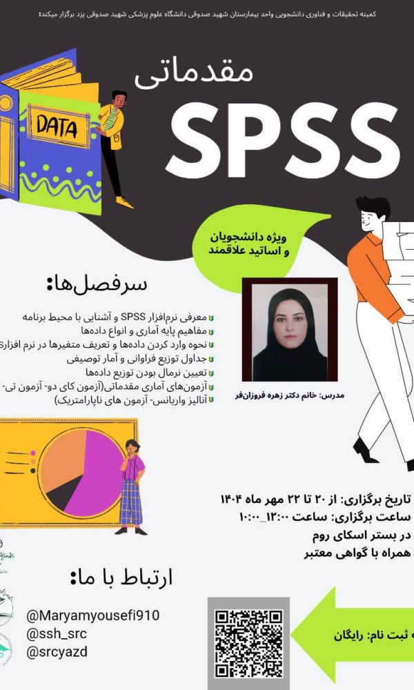 کارگاه آموزش SPSS مقدماتی ویژه دانشجویان و اساتید علاقمند به پژوهش و آنالیز ... اطلاعات بیشتر