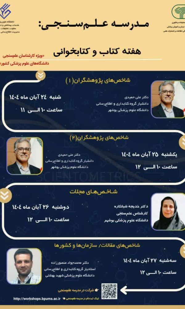 مجموعه کارگاه های توانمند سازی اعضای هیئت علمی و کارشناسان حوزه علم سنجی ... اطلاعات بیشتر