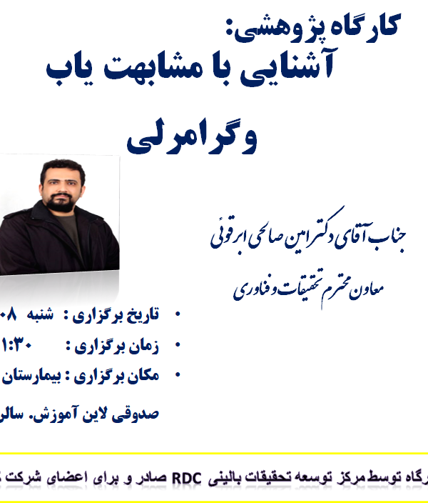 کارگاه پژوهشی آشنایی با مشابهت یاب و گرامرلیمدیر کتابخانه دیجیتال6 مهر 1402کارگاه پژوهشی آشنایی با مشابهت یاب و گرامرلی مدرس :جنابآقای دکتر امین صالحی ... اطلاعات بیشتر