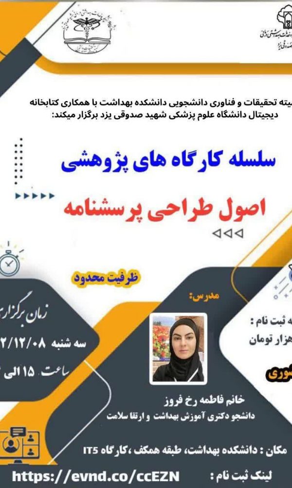 کارگاه اصول طراحی پرسشنامهمدیر کتابخانه دیجیتال4 اسفند 1402کمیته تحقیقات دانشجویی با همکاری کتابخانه دیجیتال دانشگاه کارگاه اصول طراحی پرسشنامه را ... اطلاعات بیشتر
